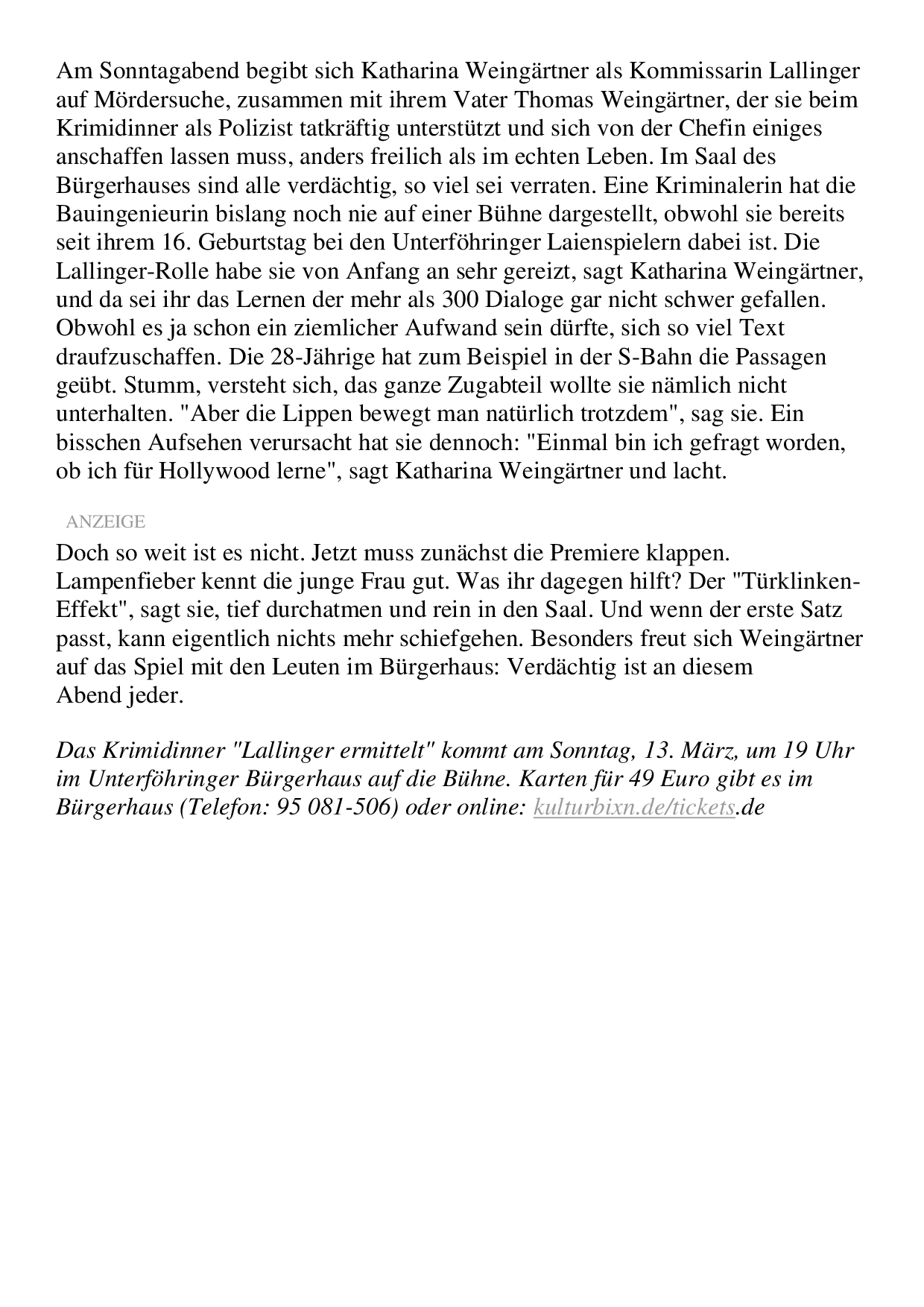 Münchner Merkur Serie "VORHANG AUF - WIR MACHEN THEATER"